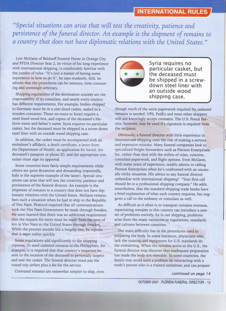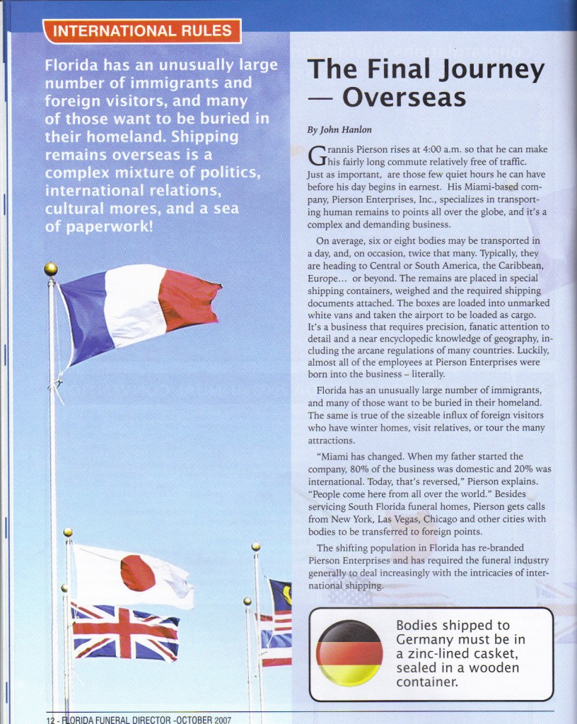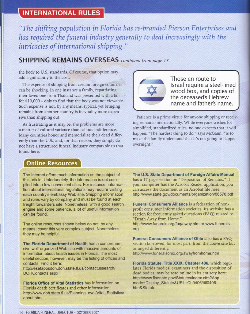 Florida Funeral Director Article—October 2007